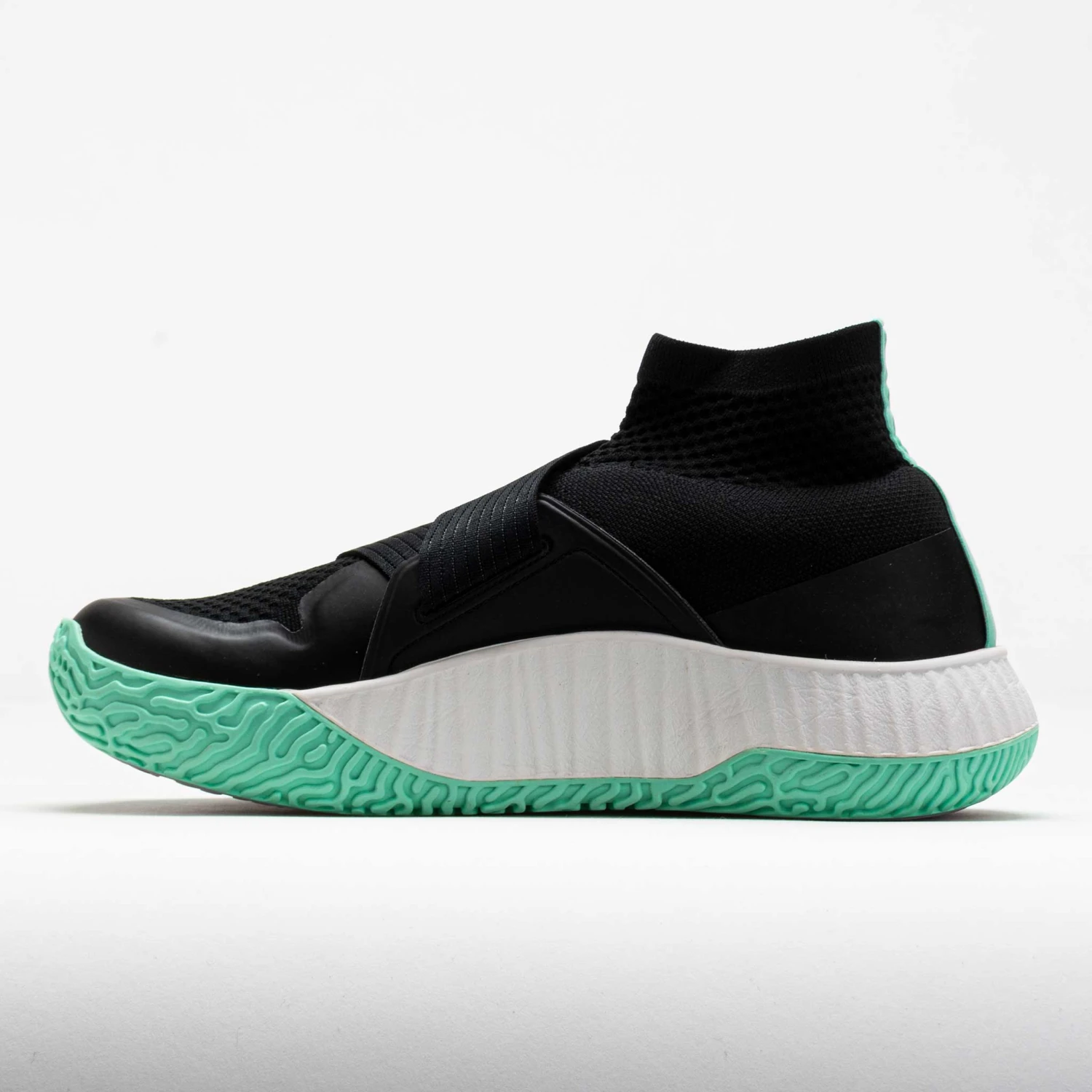 Upper: One-piece knit upper provides a glove-like fit. Secure heel design keeps you locked in during explosive movements. An accommodating toe box provides ample space to keep you comfortable. Laceless design features an elastic strap that molds to your foot for a customized fit.
